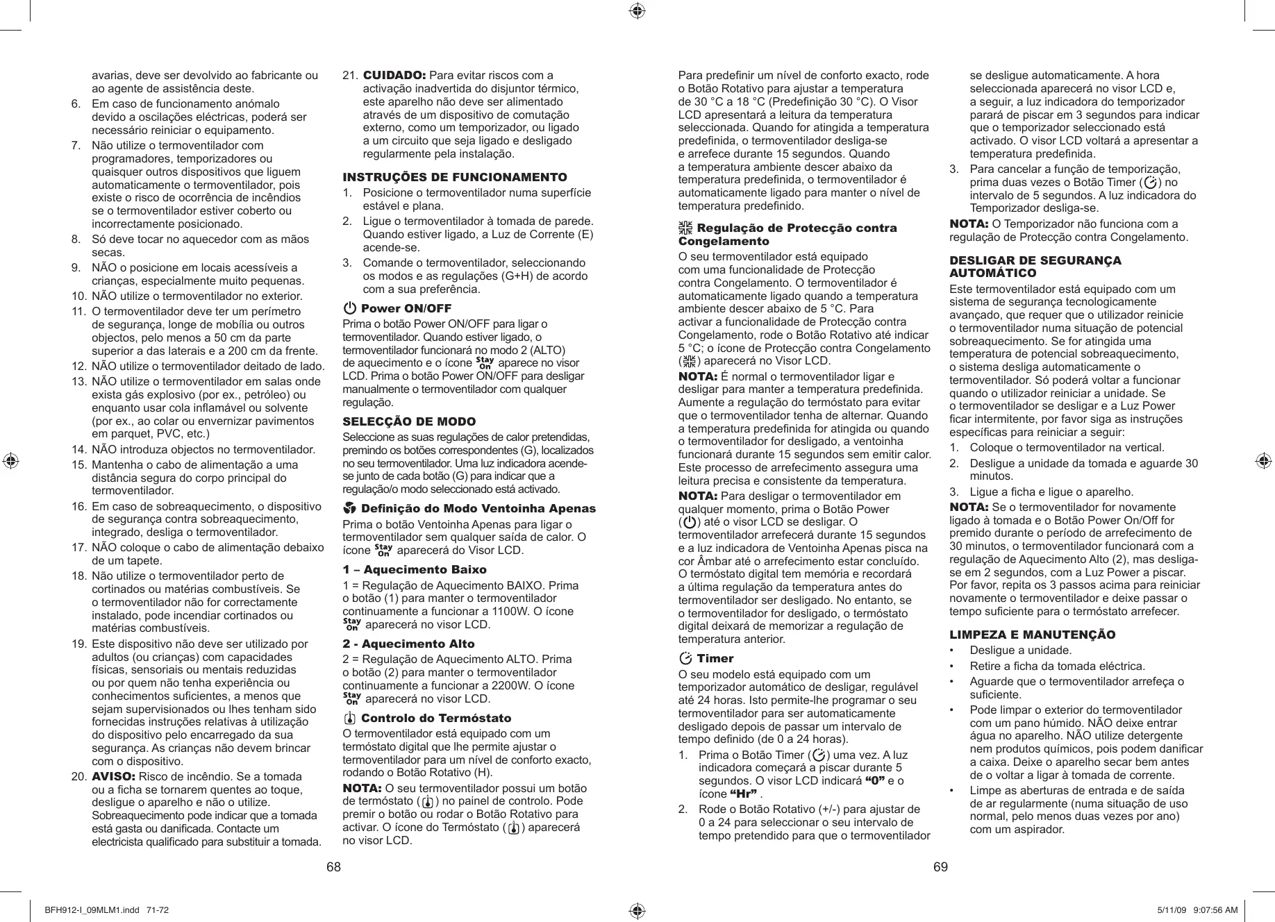 MANUAL DE UTILIZADOR BFH912 BIONAIRE