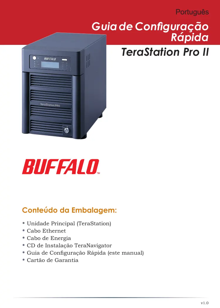 TeraStation Pro II Conteúdo da Embalagem: • Unidade Principal (TeraStation) • Cabo Ethernet • Cabo de Energia • CD de Instalação TeraNavigator • Guia de Configuração Rápida (este manual) • Cartão de Garantia