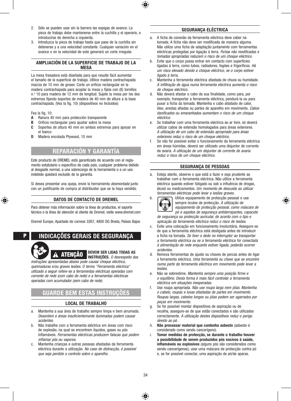 MANUAL DE UTILIZADOR 231 SHAPER ROUTER TABLE DREMEL