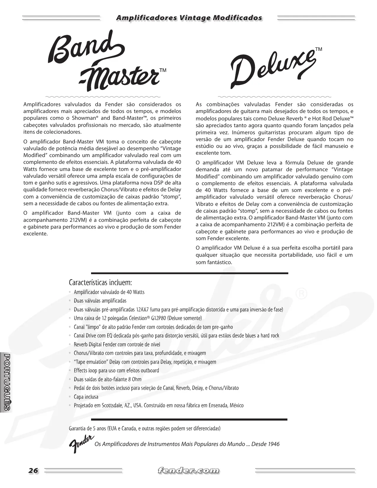 Encontre gratuitamente o manual do aparelho BAND-MASTER DELUXE FENDER em formato PDF.