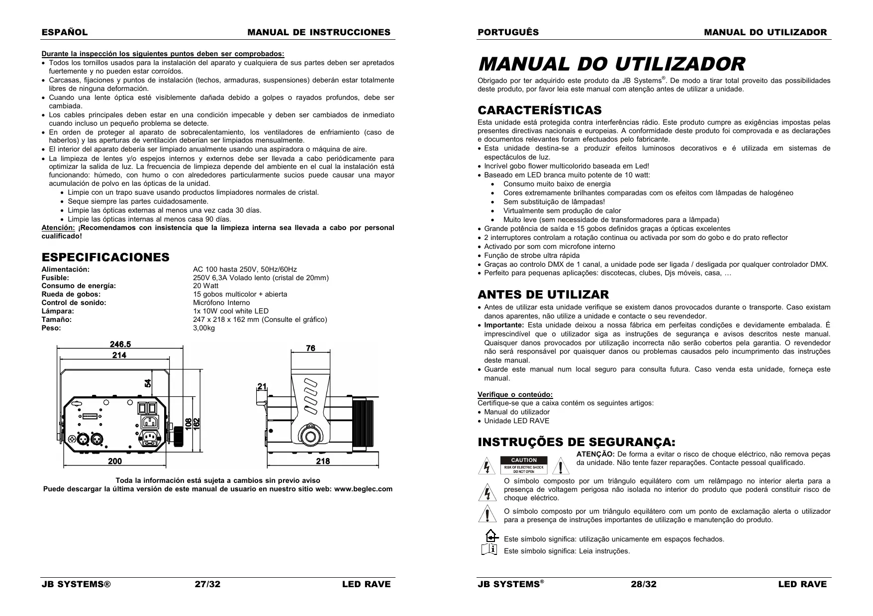 MANUAL DE UTILIZADOR LED RAVE JBSYSTEMS