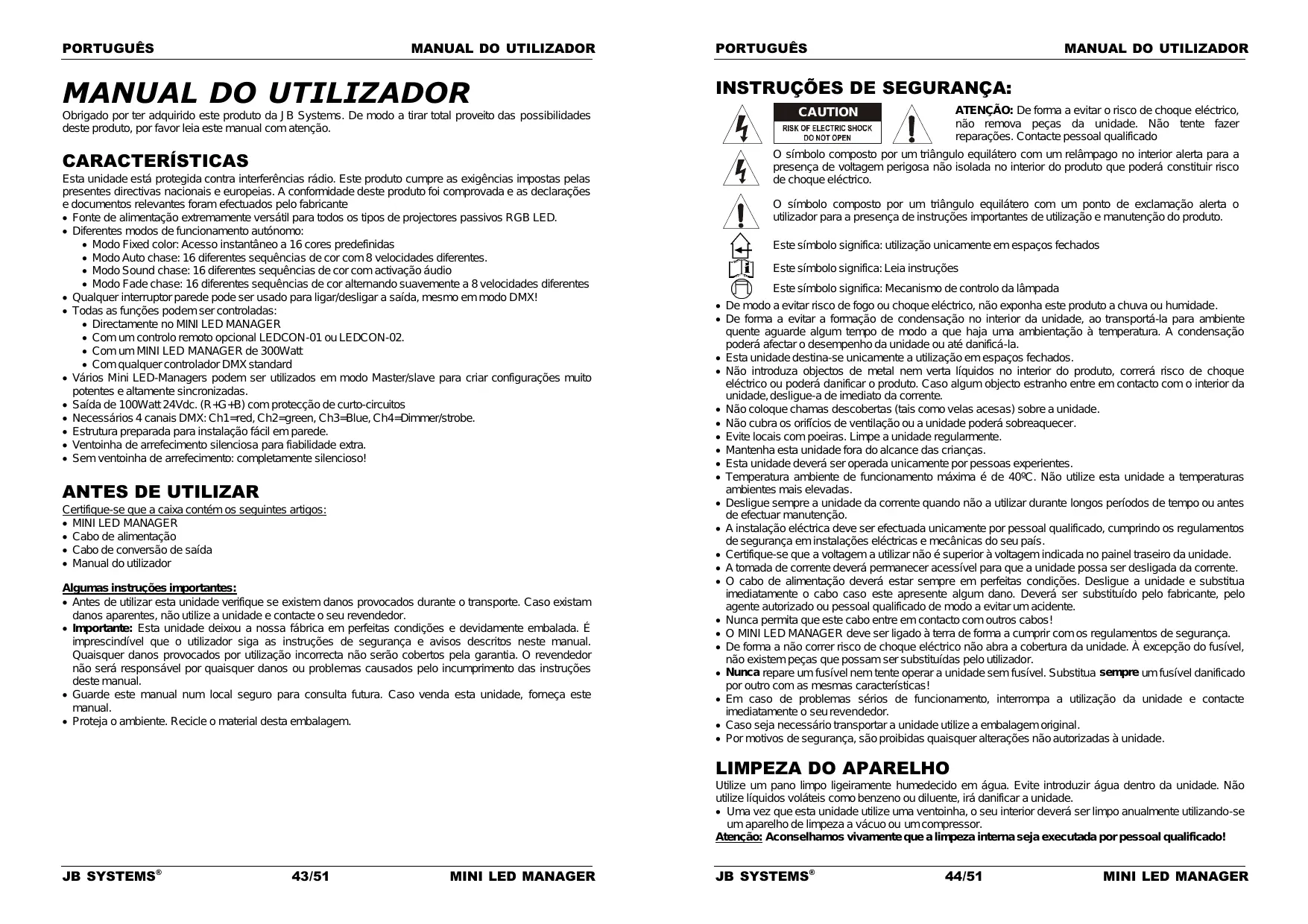 MINI LED MANAGER - JBSYSTEMS - Manual de utilização gratuito