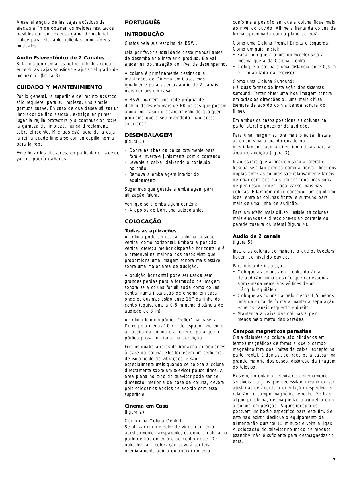 MANUAL DE UTILIZADOR B&W LCR6 S2 B&W