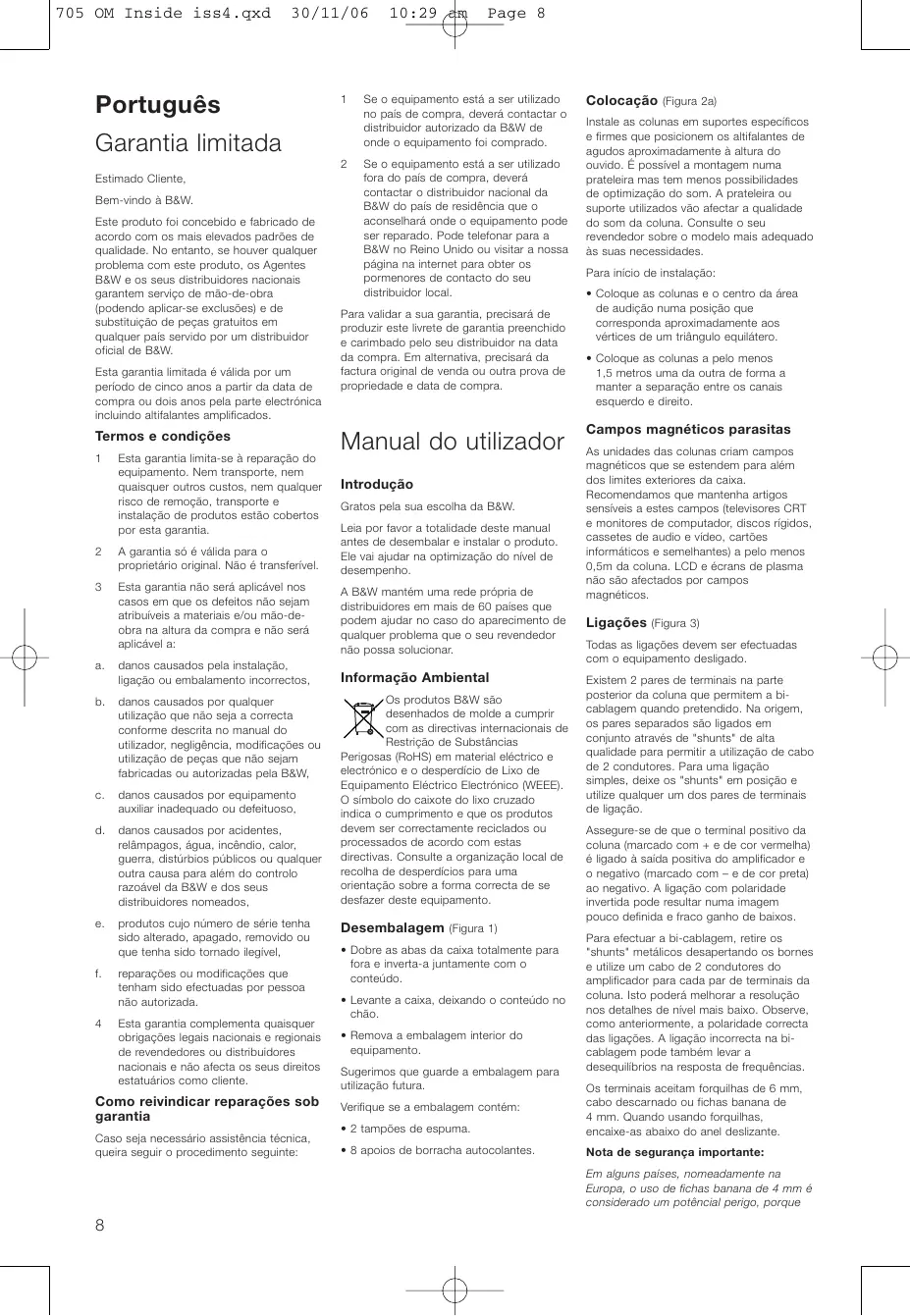 MANUAL DE UTILIZADOR B&W 705 B&W