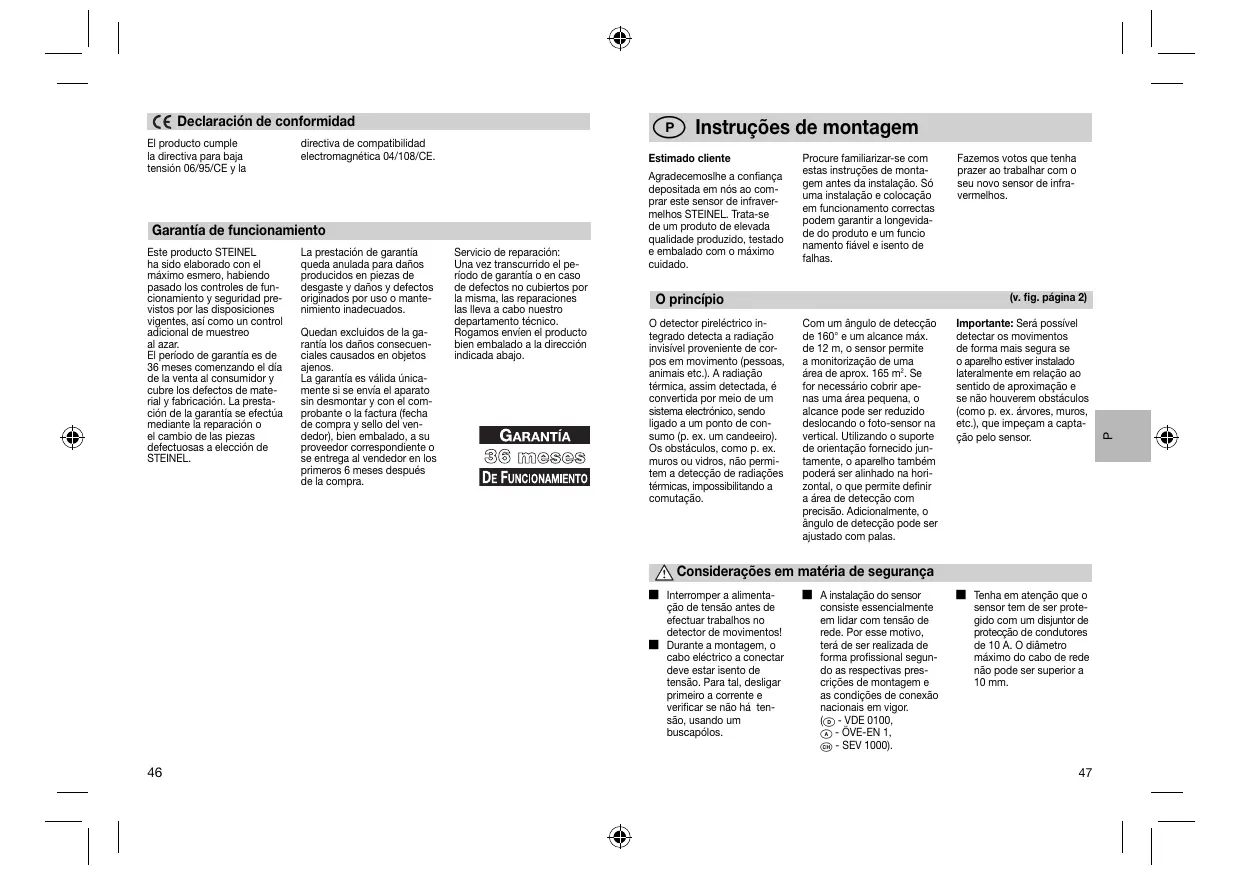 OBSSCE et à directe Service après-vente et garantie Ce produit STEINEL a été La garanti ne s'applique ni fabriqué avec le pus aux pièces d'usure, naux Son, Son fonciomiment et dommages et éfaLs us à Sa sécurité ot té contrée une utliation ou maine-nan- Suvant des procédures la” co incomectes. bles ea 8l soumis à un gone fnalpar sondage. Les dommages consécuis STEEL garant un état et causés à d'autres objet sont un fonctionnement imépr EXC dela garant, La durée de garanti est de La garantiene s'applique que Sms ct dfbue aupu de appel no does la vente au consommateur. retourné au point de service Nous remécions aux défauts apres veniee ps proche, provenant d'un vice de ma. dans un embalage adéqua. Fe ou de consructen Lage- accompagné d'u lciie ou ranbe era assurée à noie d'un che de casse porant Garon parréparaion ou [a date d'achai etie cache du échange des pièces défec- vendeur ou s'i est remis lues Au vendeur das les 8 pre rer mo de La garanti. ds