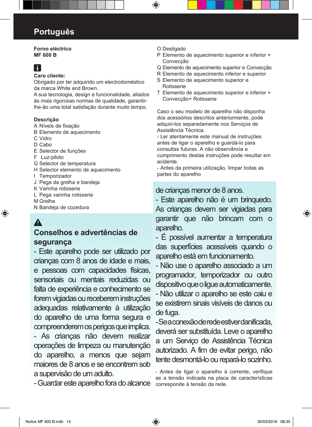 MANUAL DE UTILIZADOR WHITE & BROWN MF600B WHITE & BROWN