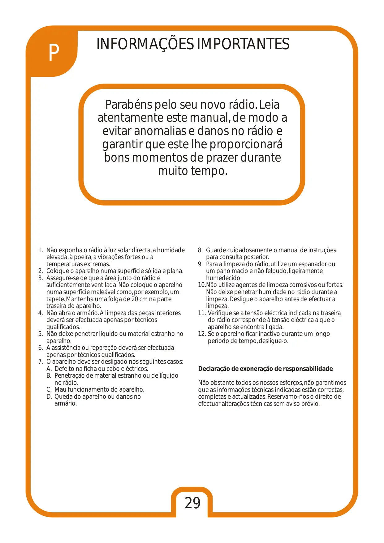 Parabéns pelo seu novo rádio. Leia atentamente este manual, de modo a evitar anomalias e danos no rádio e garantir que este lhe proporcionará bons momentos de prazer durante muito tempo.