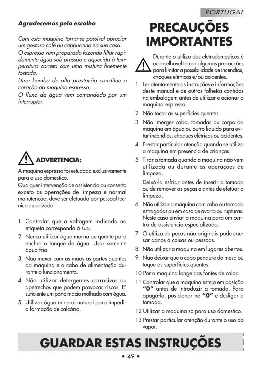 Café pas assez tassé. Café trop vieux ou desséché. 12 Utilizar la máquina únicamente para uso doméstico. 13 Poner extremado cuidado durante el uso de vapor.