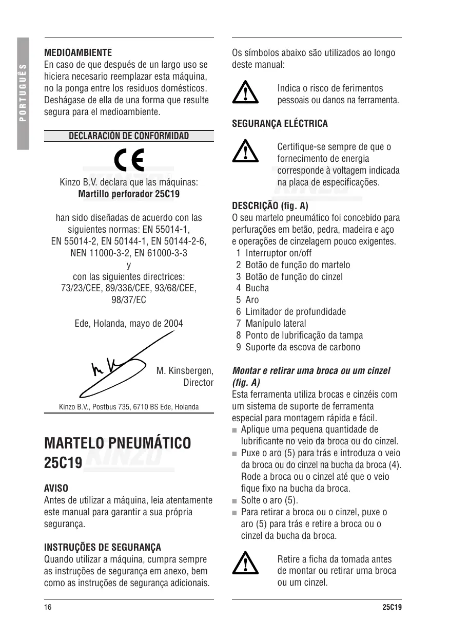 ITALIANO Kinzo B.V. declara que as máquinas: Martelo pneumático 25C19