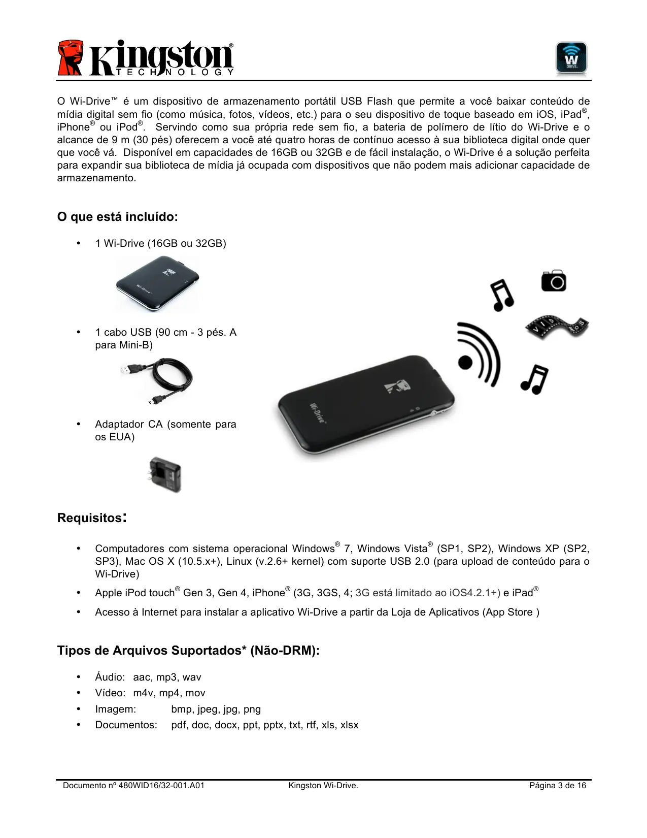 Baixe as instruções para o seu em formato PDF gratuitamente! Encontre o seu manual WID - KINGSTON e retome o controlo do seu dispositivo eletrónico. Nesta página estão publicados todos os documentos necessários para a utilização do seu dispositivo. WID da marca KINGSTON.