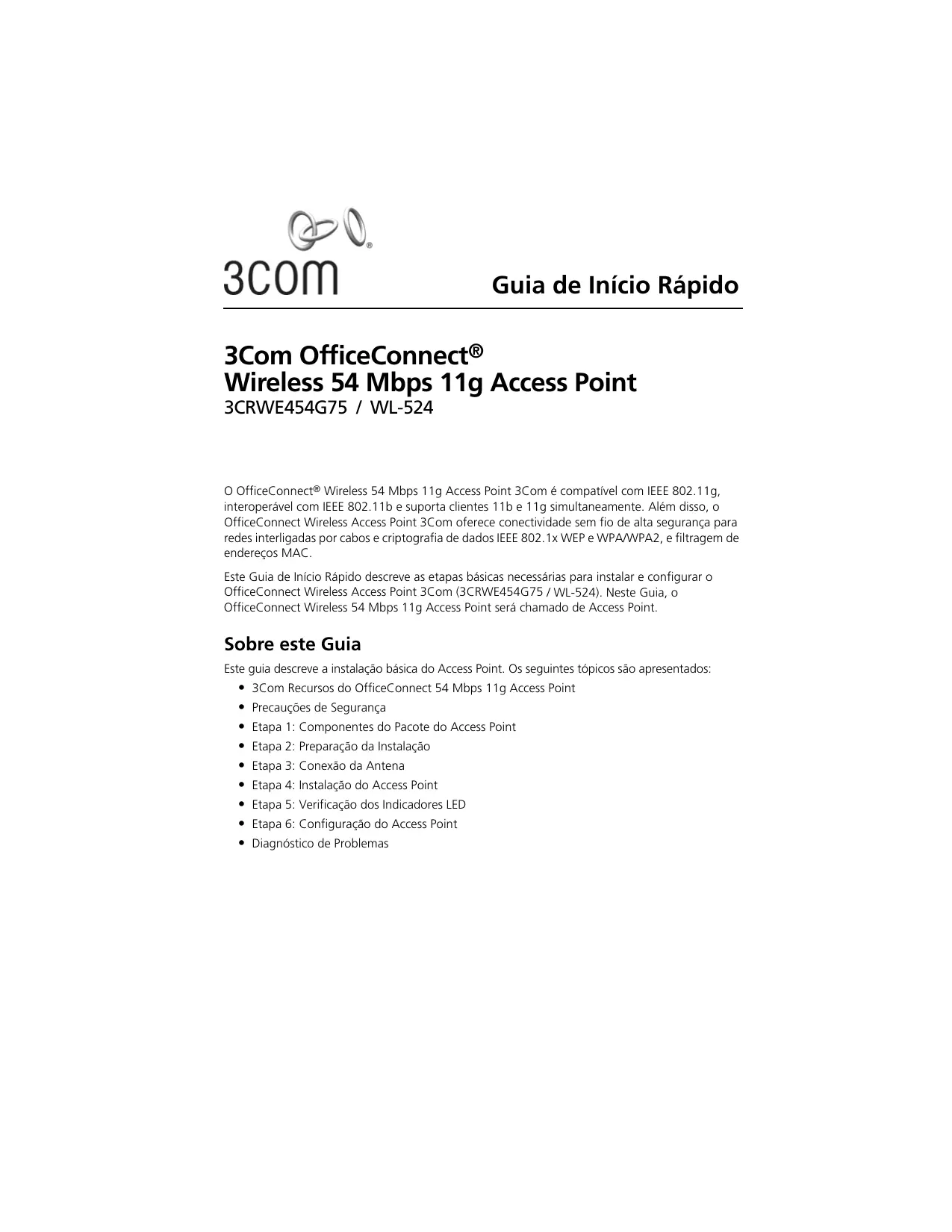 OFFICECONNECT WL-524 - Ponto de acesso sem fio 3COM - Manual de utilização gratuito