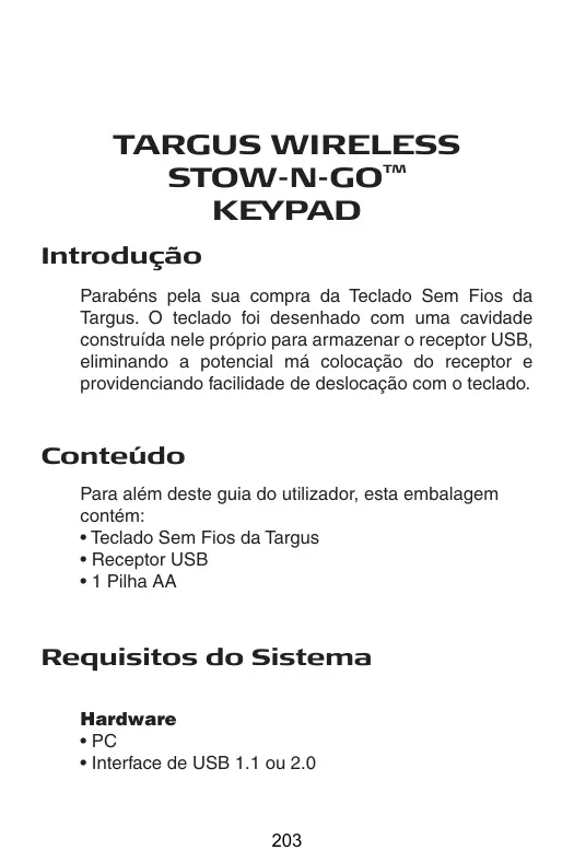 Baixe as instruções para o seu Acessórios de informática em formato PDF gratuitamente! Encontre o seu manual AKP07EU - TARGUS e retome o controlo do seu dispositivo eletrónico. Nesta página estão publicados todos os documentos necessários para a utilização do seu dispositivo. AKP07EU da marca TARGUS.
