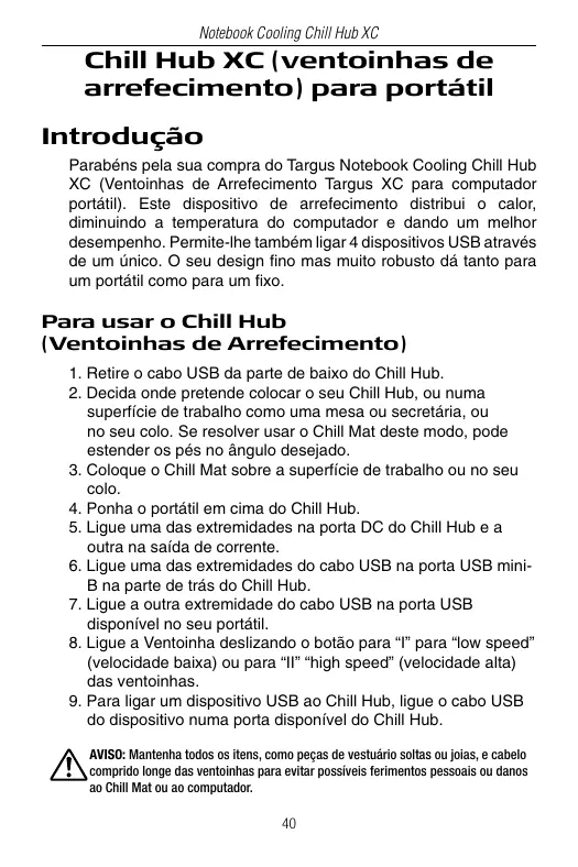 Encontre gratuitamente o manual do aparelho NOTEBOOK COOLING CHILL HUB XC TARGUS em formato PDF.