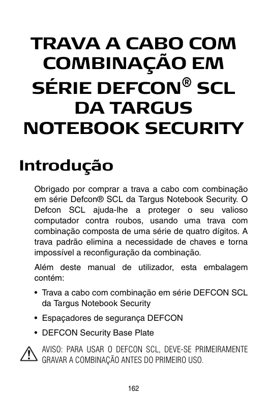 NOTEBOOK SECURITY DEFCON SCL - Segurança para laptops TARGUS - Manual de utilização gratuito