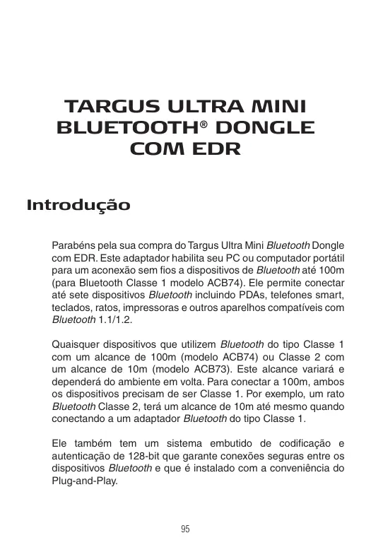 Encontre gratuitamente o manual do aparelho ULTRA MINI BLUETOOTH TARGUS em formato PDF.