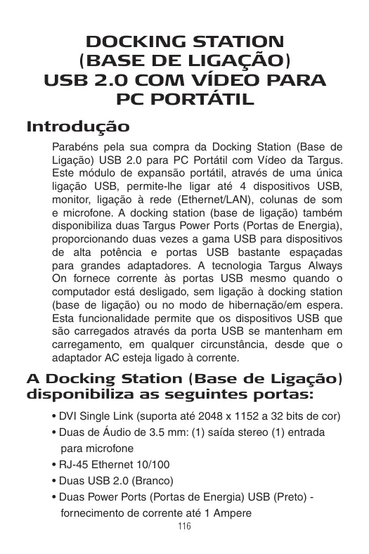 USB 2.0 LATPOP DOCKING STATION - Estação de ancoragem USB TARGUS - Manual de utilização gratuito