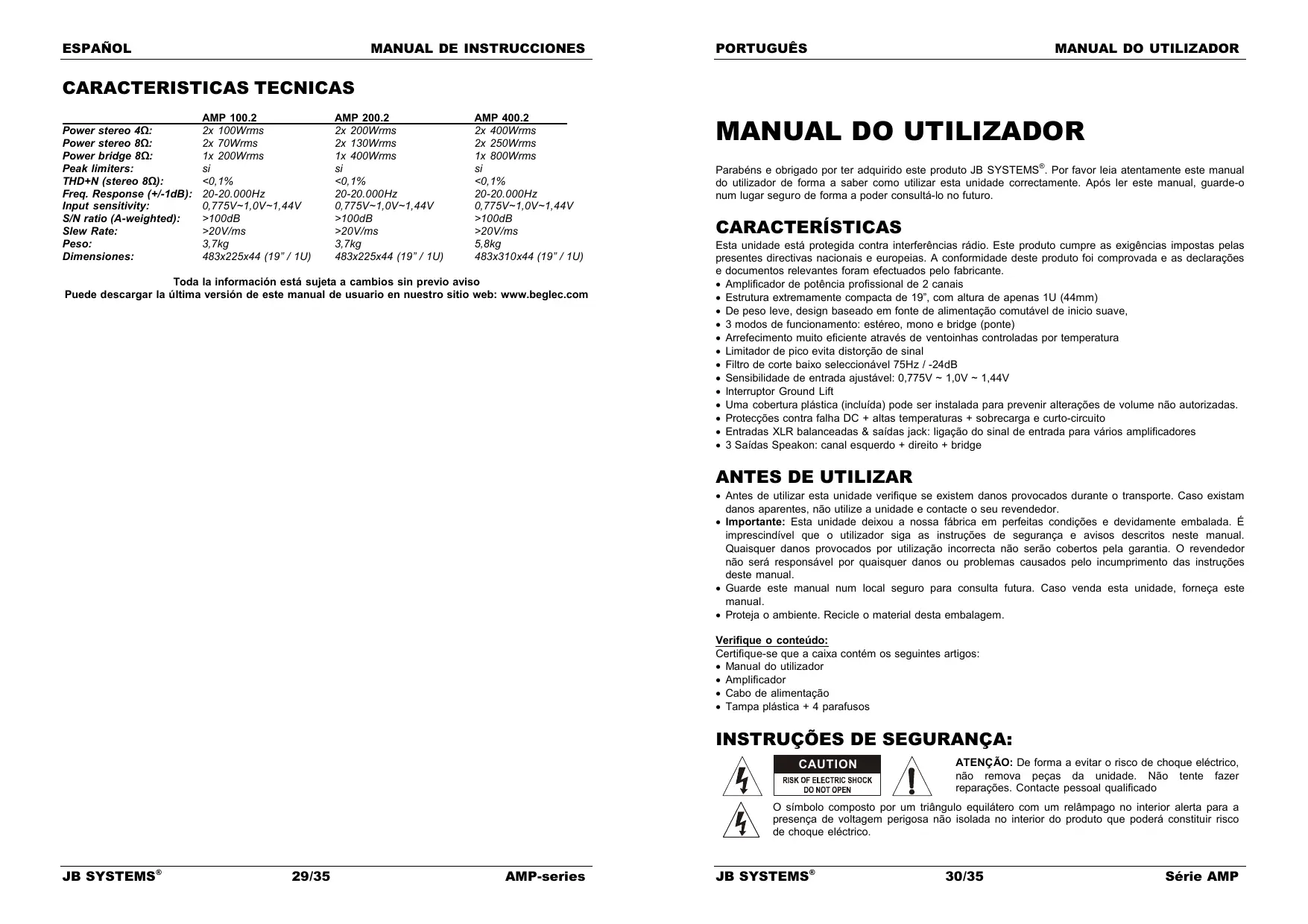 MANUAL DE UTILIZADOR AMP 400.2 BEGLEC
