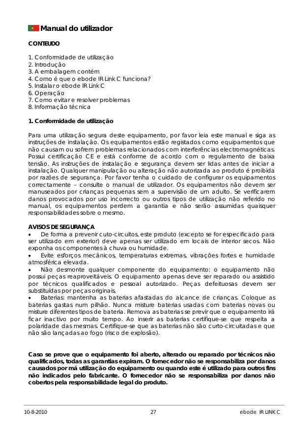MANUAL DE UTILIZADOR XDOM IR LINK C EDOBE