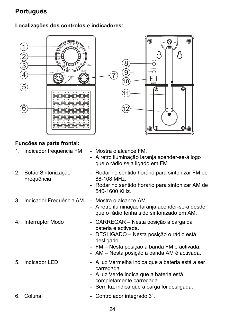 - Ter em atençao que a recepcao do rado fica mais fraça e que o som pode ficar distorcido quando a bateria estiver a necessitar dearga.