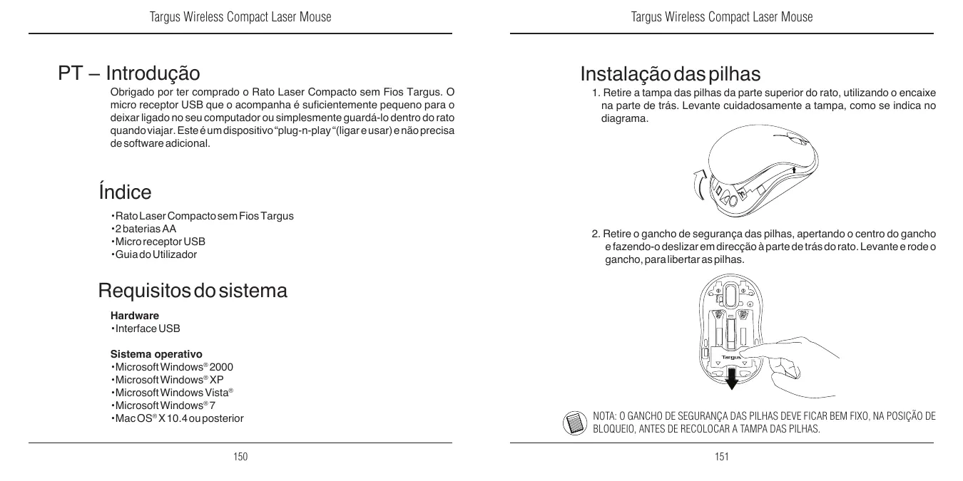Encontre gratuitamente o manual do aparelho WIRELESS COMPACT LASER MOUSE TARGUS em formato PDF.