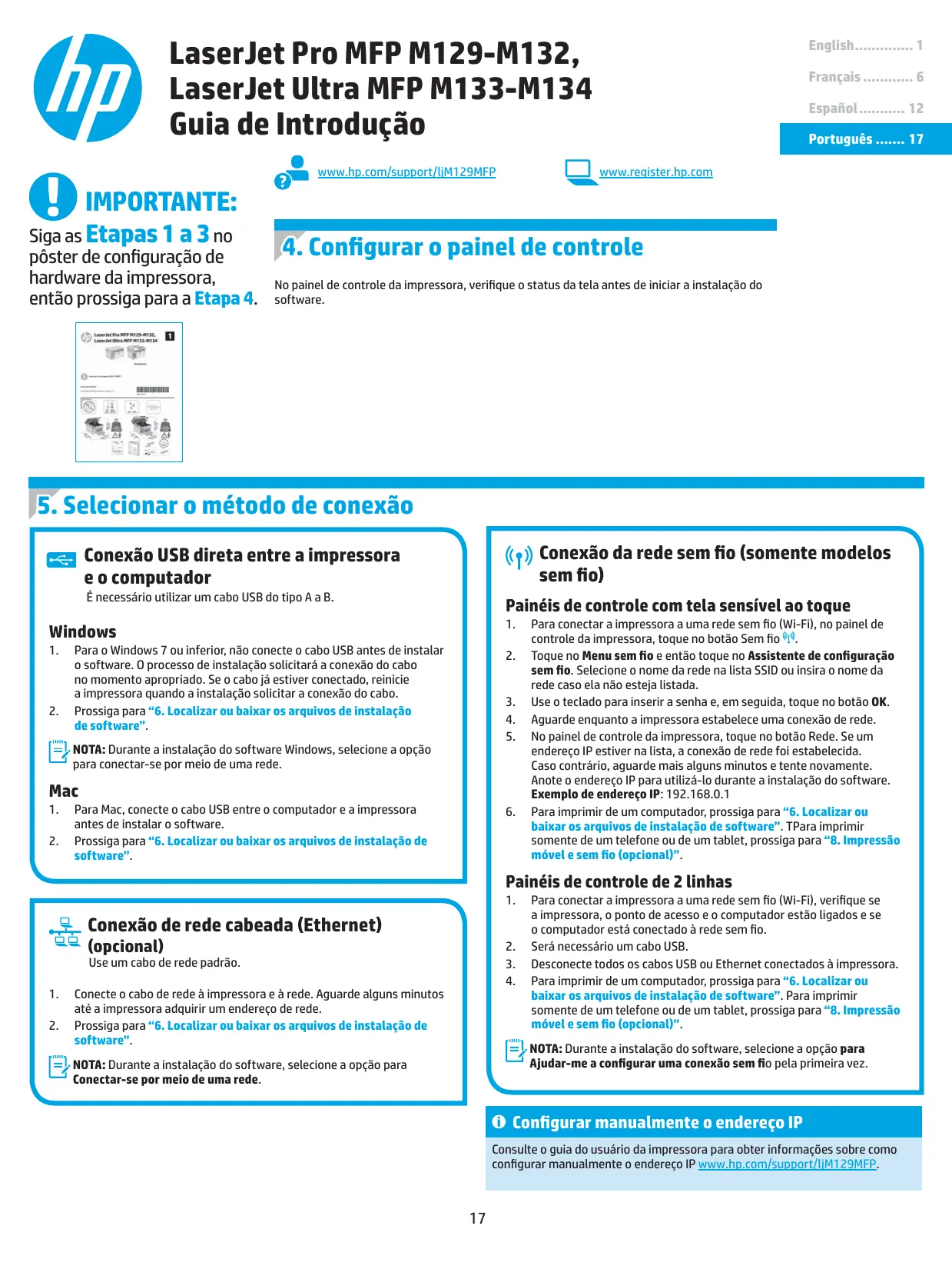 www.hp.com/support/ljM129MFP English 1 Français 6 Español 12 Português 17 www.register.hp.com