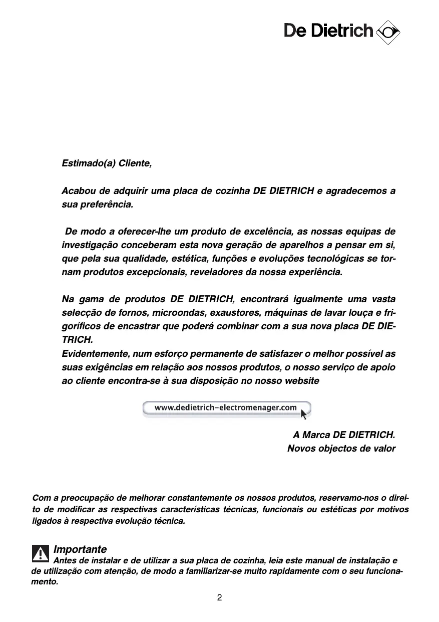 DTI1049X - Placa de cozinha DE DIETRICH - Manual de utilização gratuito