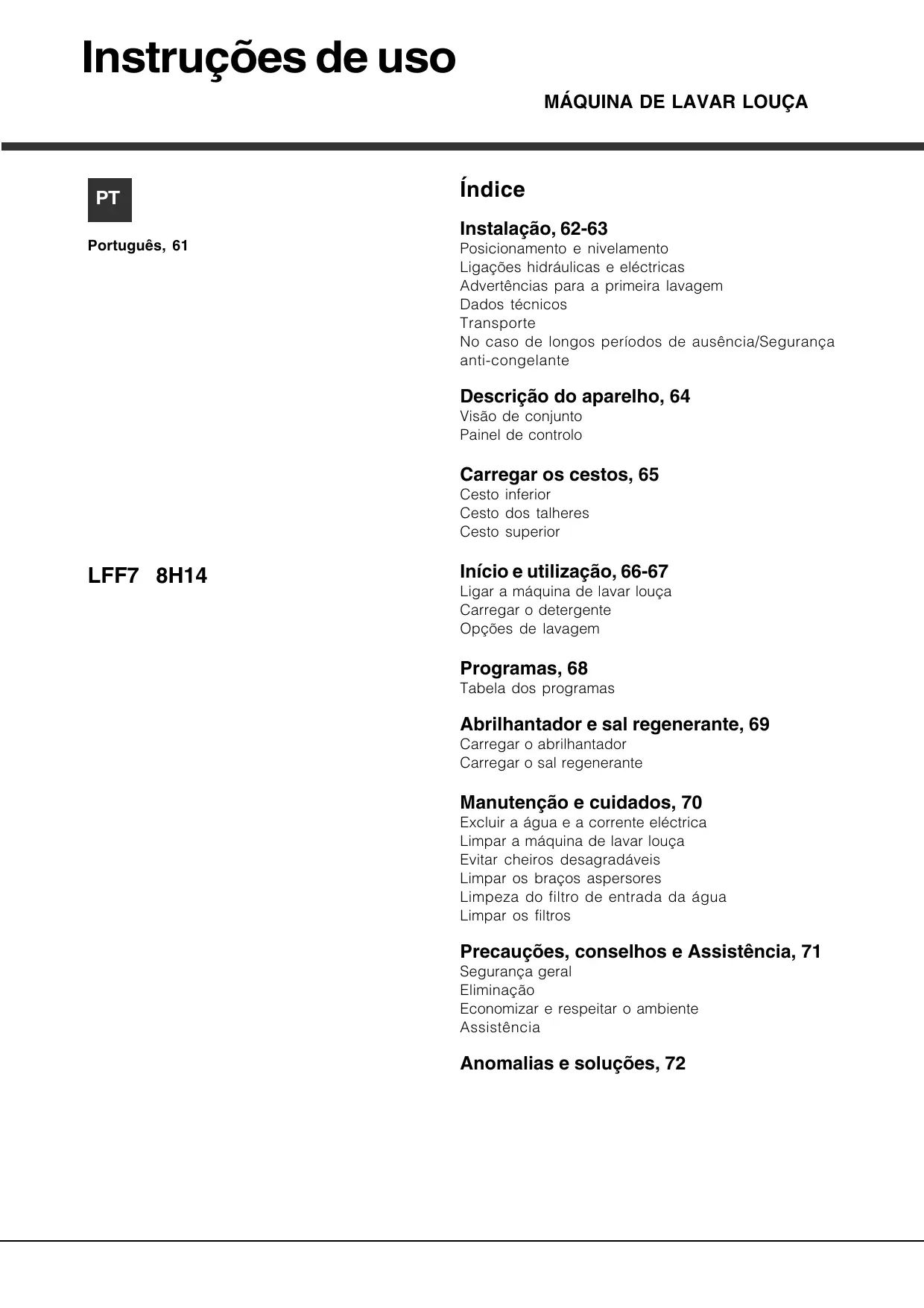 MÁQUINA DE LAVAR LOUÇA PT Português, 61