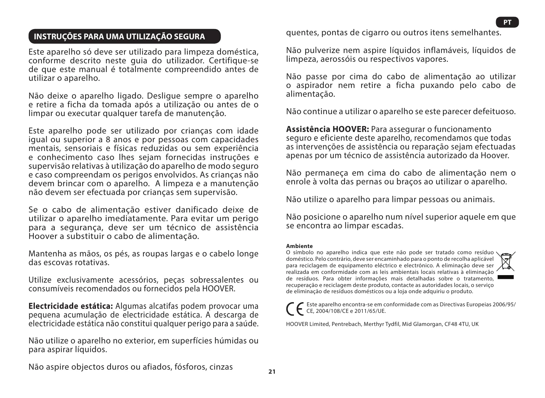 Encontre gratuitamente o manual do aparelho TE70 TE56 TELIOS PLUS HOOVER em formato PDF.