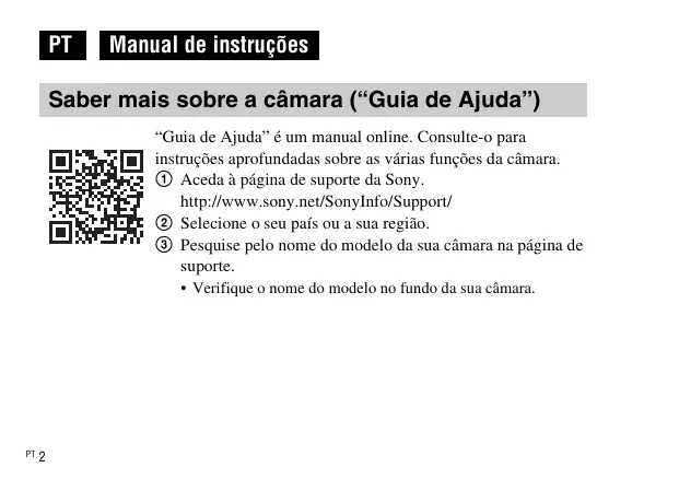 "Guia de Ajuda" é um manual online. Consulte-o para instruções aprofundadas sobre as varías funções da-camera.