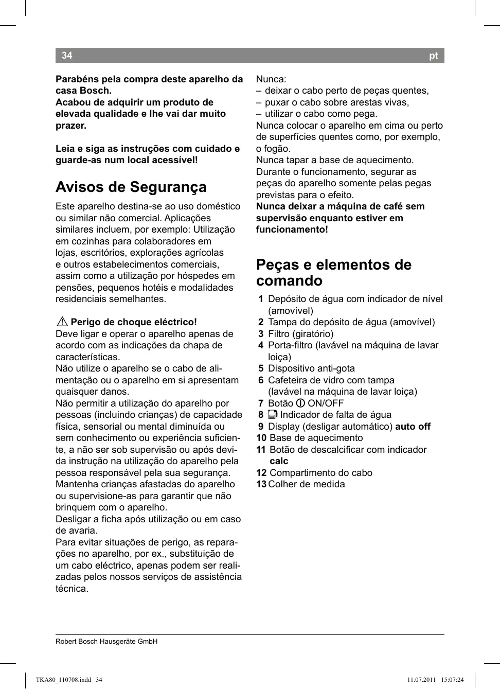 TKA8013 - Cafeteira BOSCH - Manual de utilização gratuito