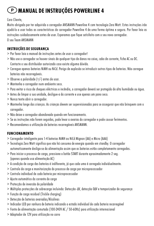 Encontre gratuitamente o manual do aparelho POWERLINE 4 ANSMANN em formato PDF.