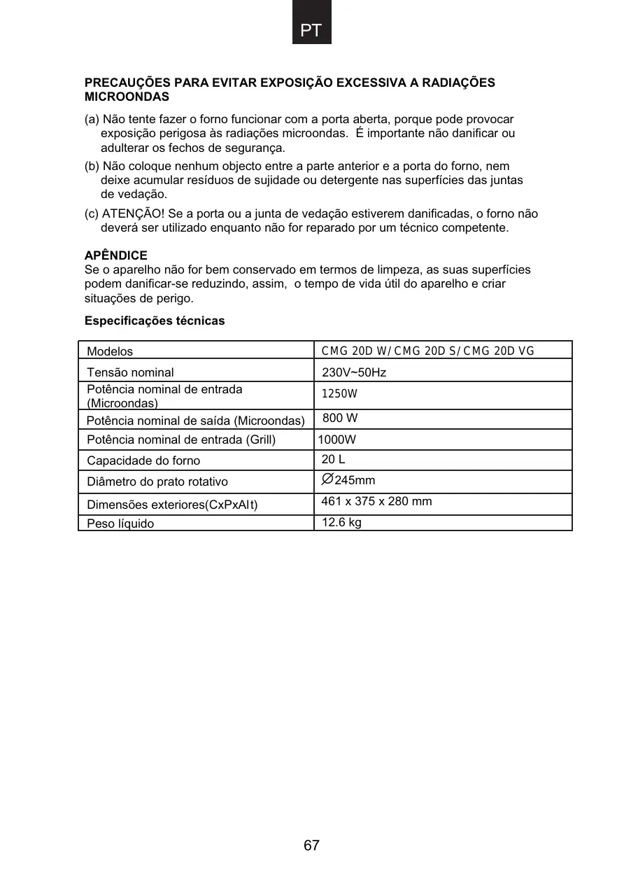 CMG20DW - Micro-ondas CANDY - Manual de utilização gratuito