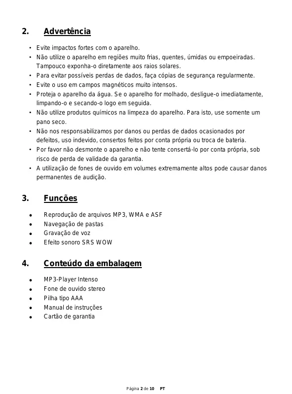 Encontre gratuitamente o manual do aparelho MUSIC RUNNER INTENSO em formato PDF.