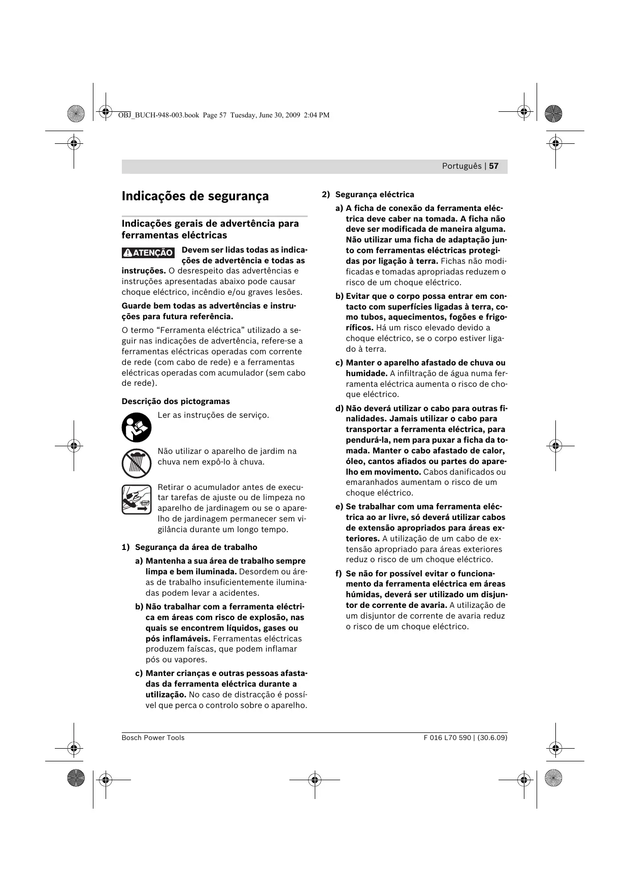Bosch Power Tools OBJ_BUCH-948-003.book Page 57 Tuesday, June 30, 2009 2:04 PM Português | 57 Indicações de segurança