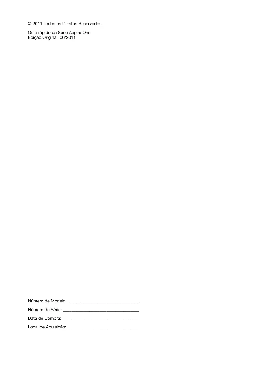 © 2011 Todos os Direitos Reservados. Guia rápido da Série Aspire One Edição Original: 06/2011