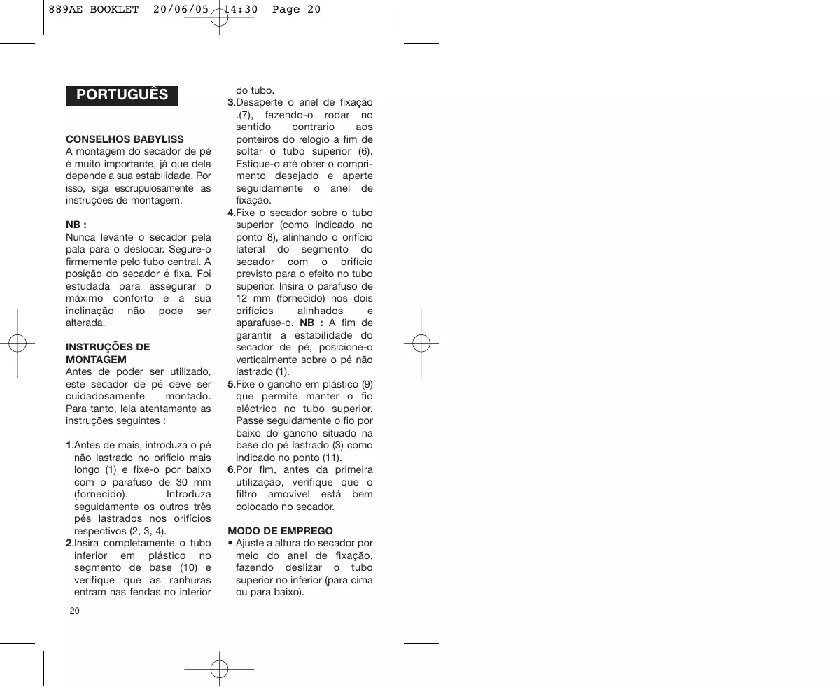 Encontre gratuitamente o manual do aparelho 889AE BABYLISS em formato PDF.