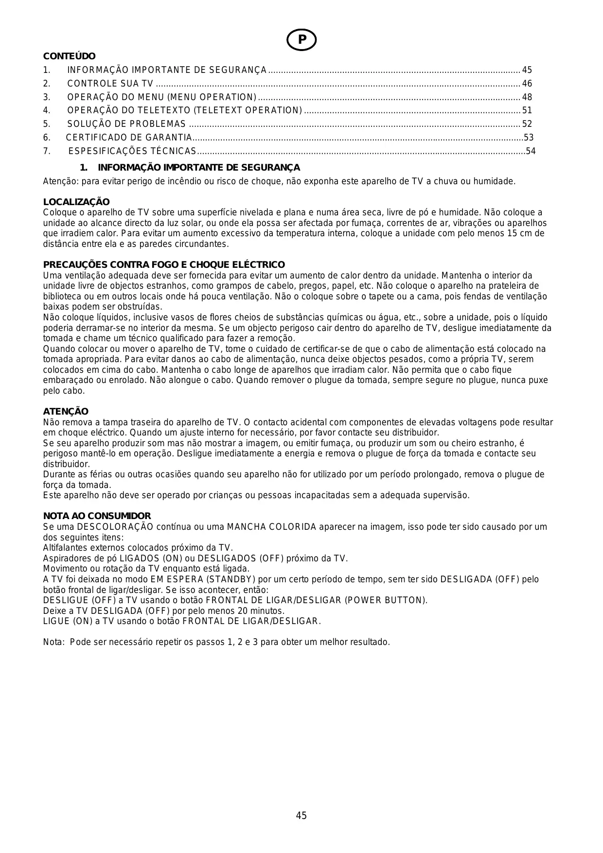 - CONTEÚDO INFORMAÇÃO IMPORTANTE DE SEGURANÇA p. 45