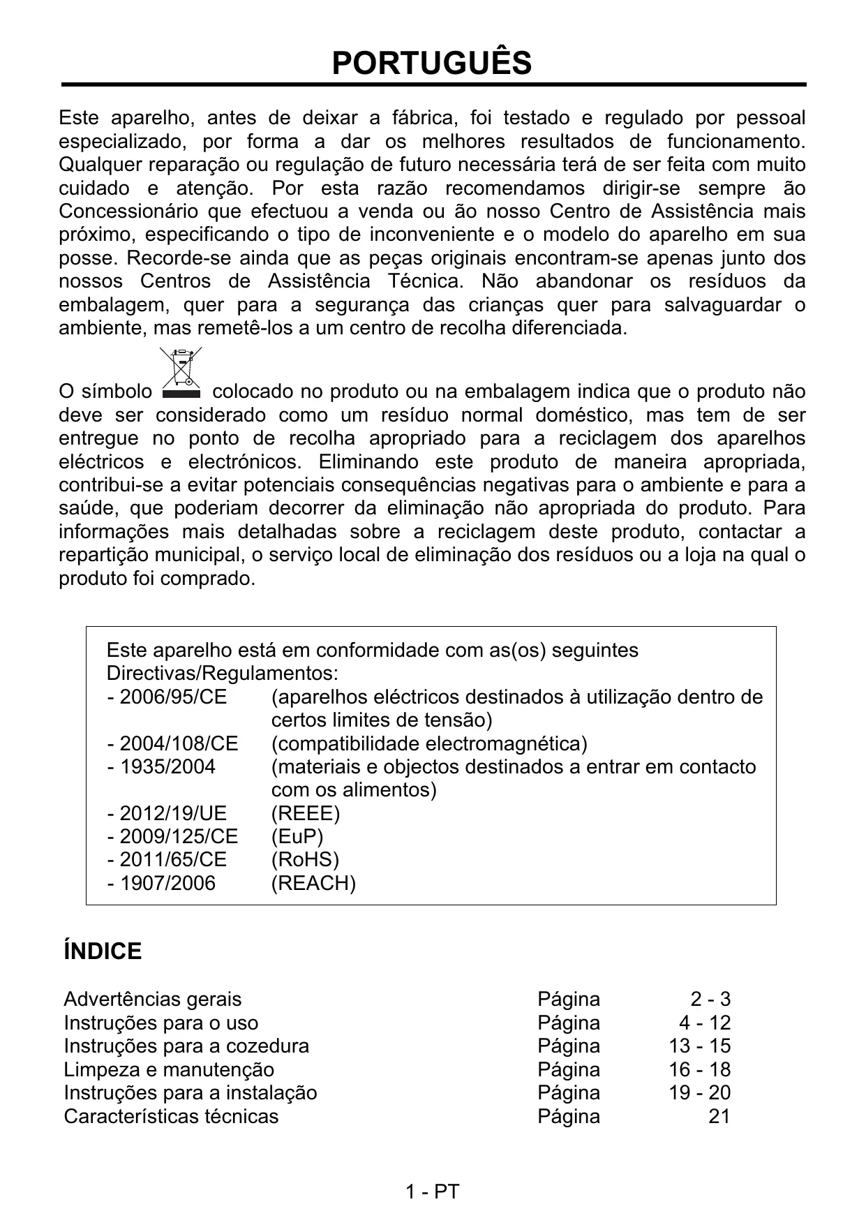 - 2006/95/CE Nettoyage et entretien Instructions pour l’installation Caractéristiques techniques