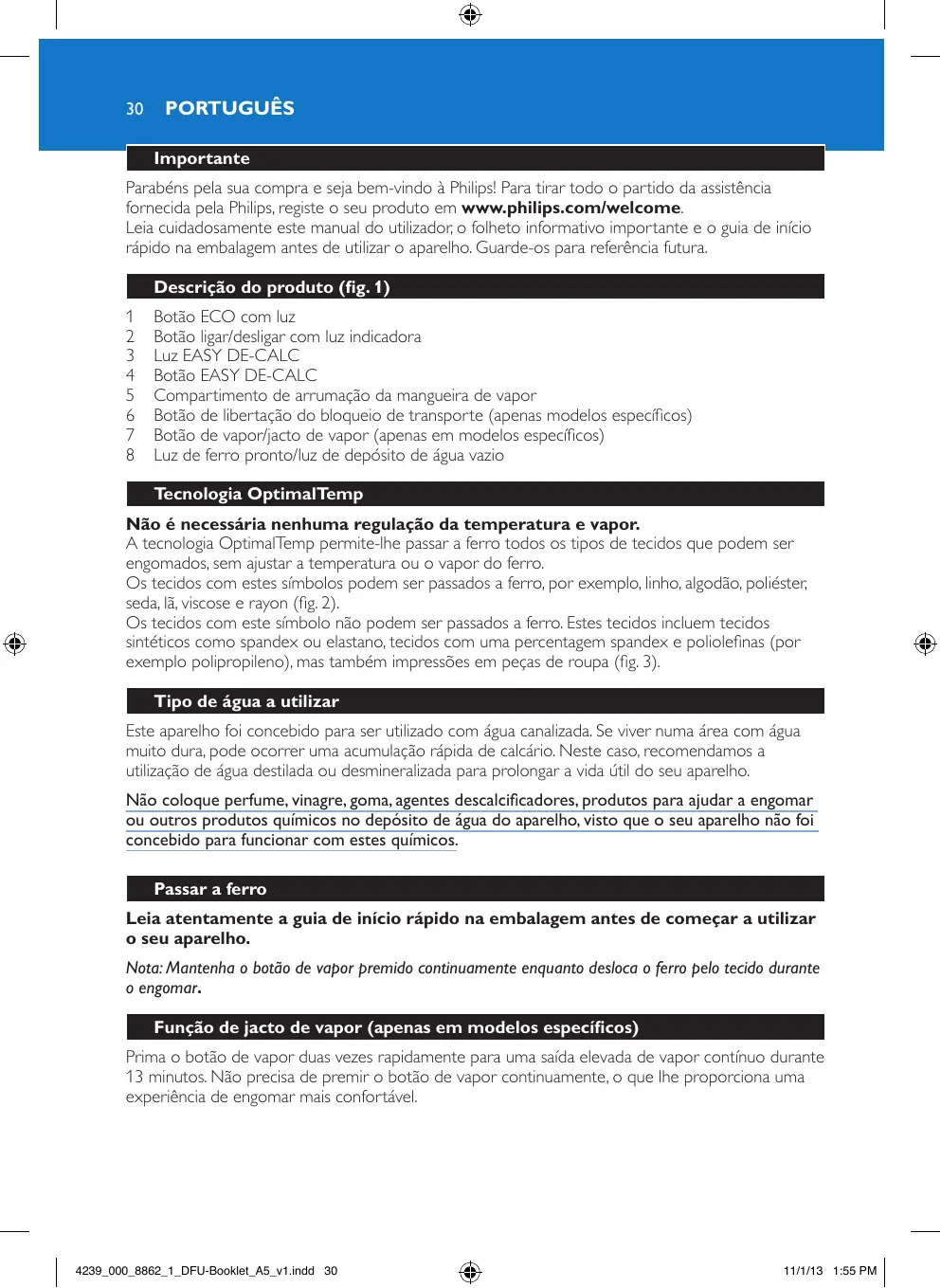 GC9666 - Ferro a vapor PHILIPS - Manual de utilização gratuito