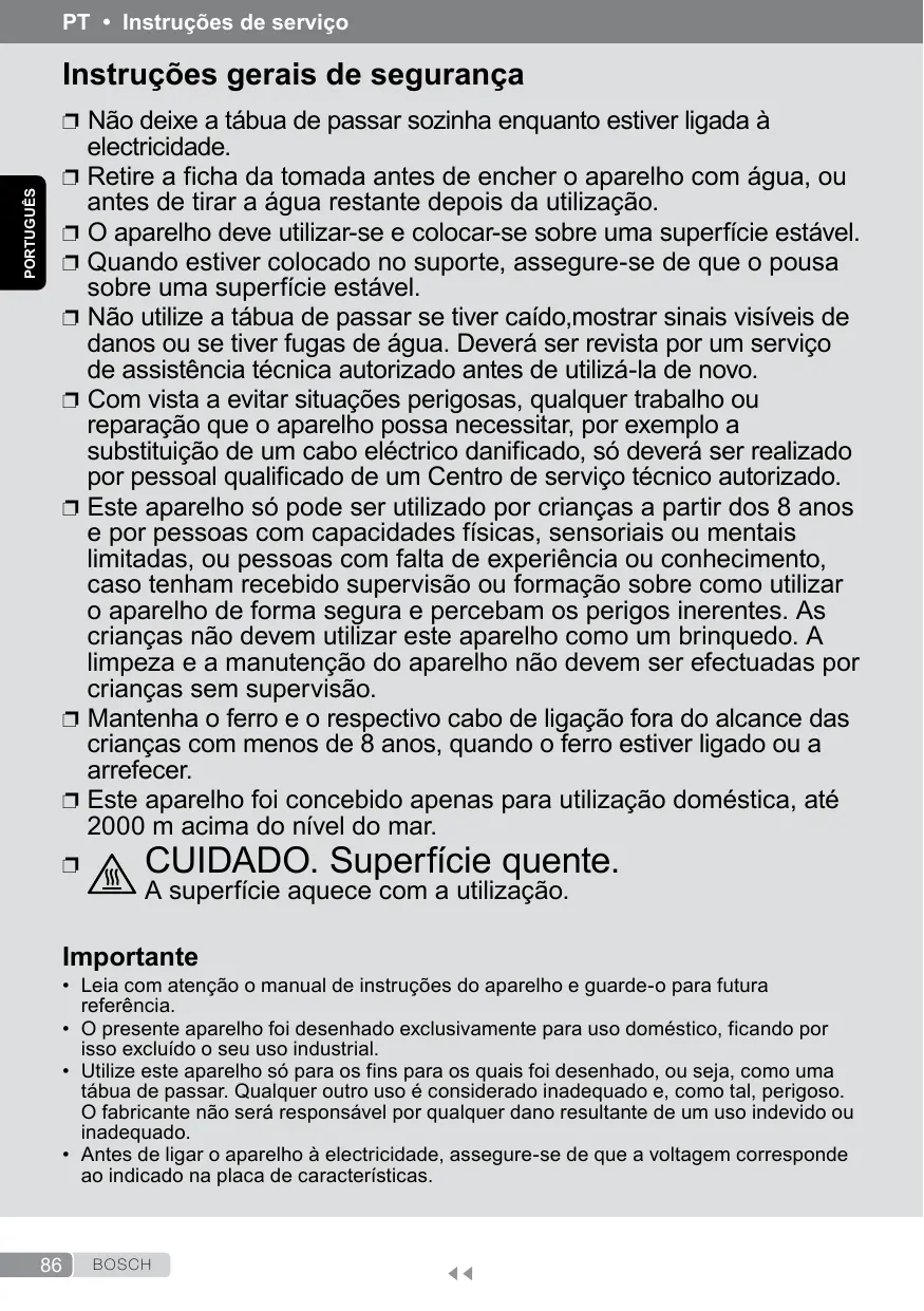 Instruções gerais de segurança ❐ Não deixe a tábua de passar sozinha enquanto estiver ligada à PORTUGUÊS
