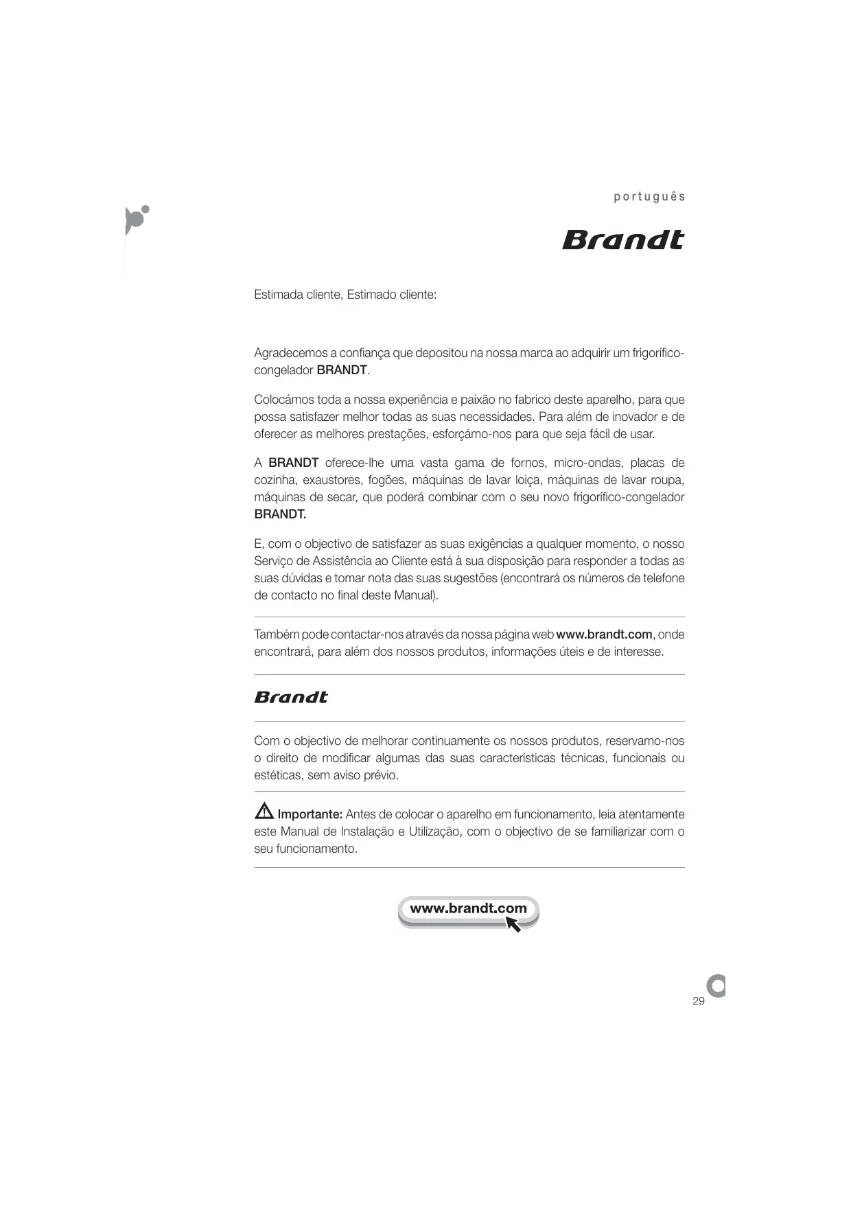 Encontre gratuitamente o manual do aparelho C32711X BRANDT em formato PDF.