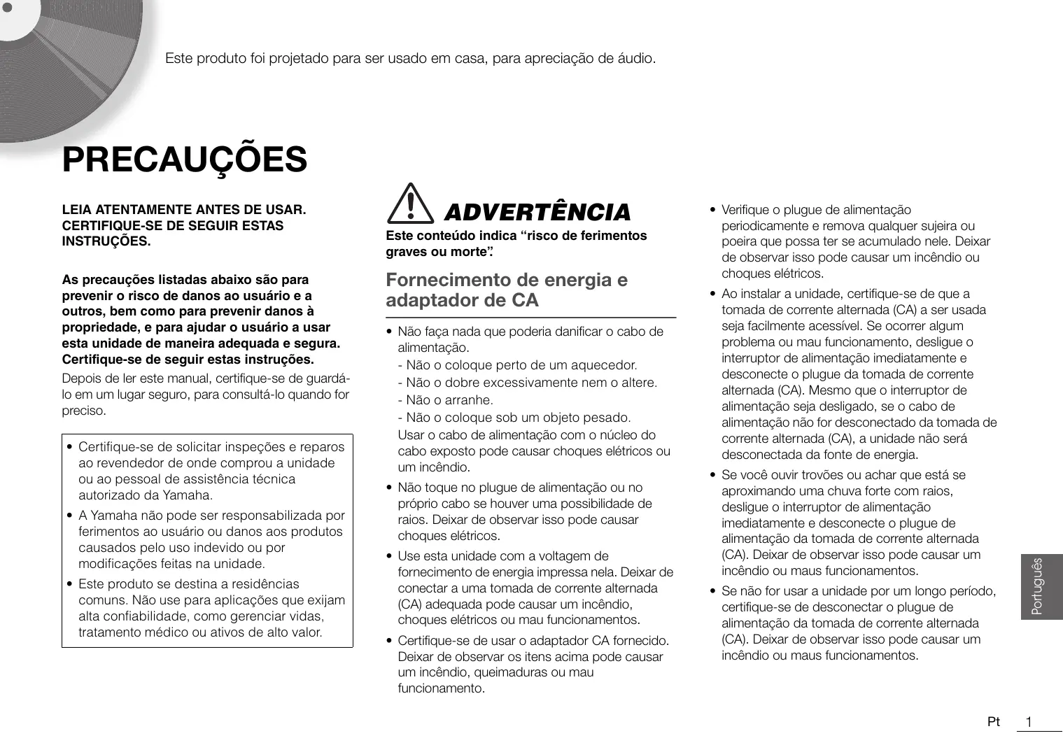 Baixe as instruções para o seu Toca-discos em formato PDF gratuitamente! Encontre o seu manual MUSICCAST VINYL 500 - YAMAHA e retome o controlo do seu dispositivo eletrónico. Nesta página estão publicados todos os documentos necessários para a utilização do seu dispositivo. MUSICCAST VINYL 500 da marca YAMAHA.