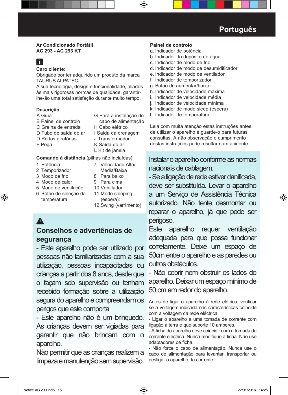 Encontre gratuitamente o manual do aparelho HOME AC 293 TAURUS em formato PDF.