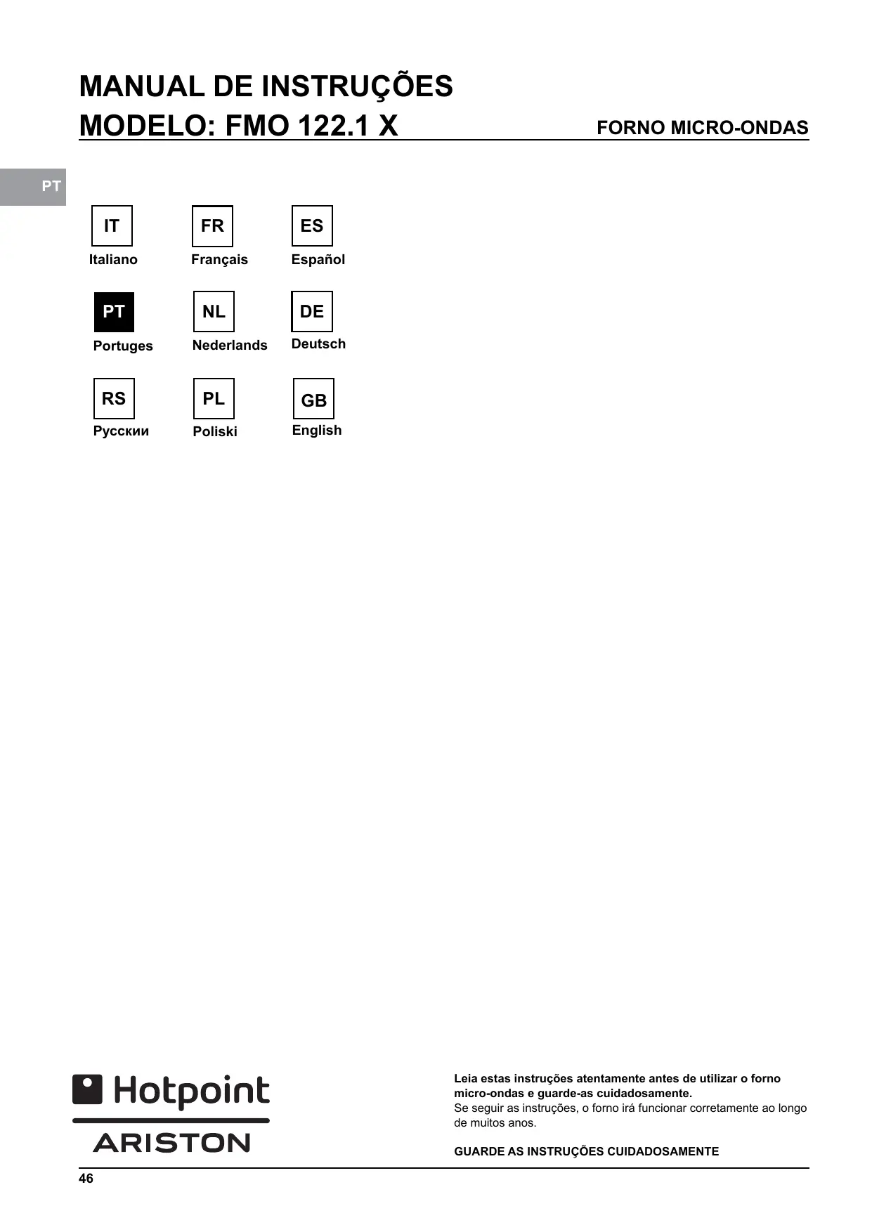 Encontre gratuitamente o manual do aparelho MD764WHHA HOTPOINT em formato PDF.
