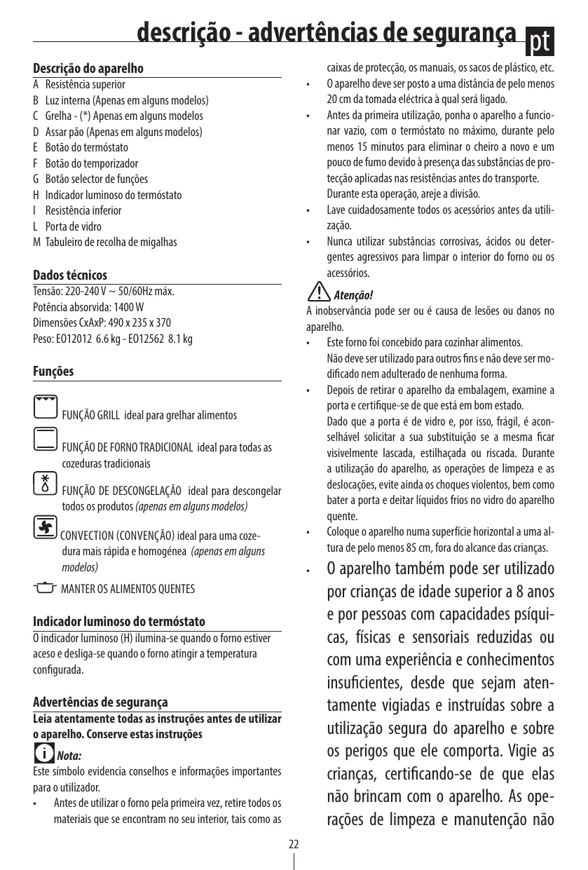 EO 32352 - EO 32602 - EO 32602.S - Forno elétrico DELONGHI - Manual de utilização gratuito