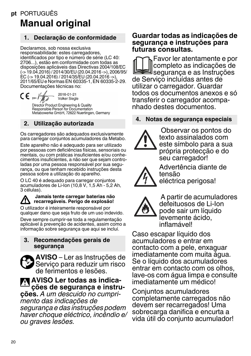 MANUAL DE UTILIZADOR SB 18 LT 18 V METABO
