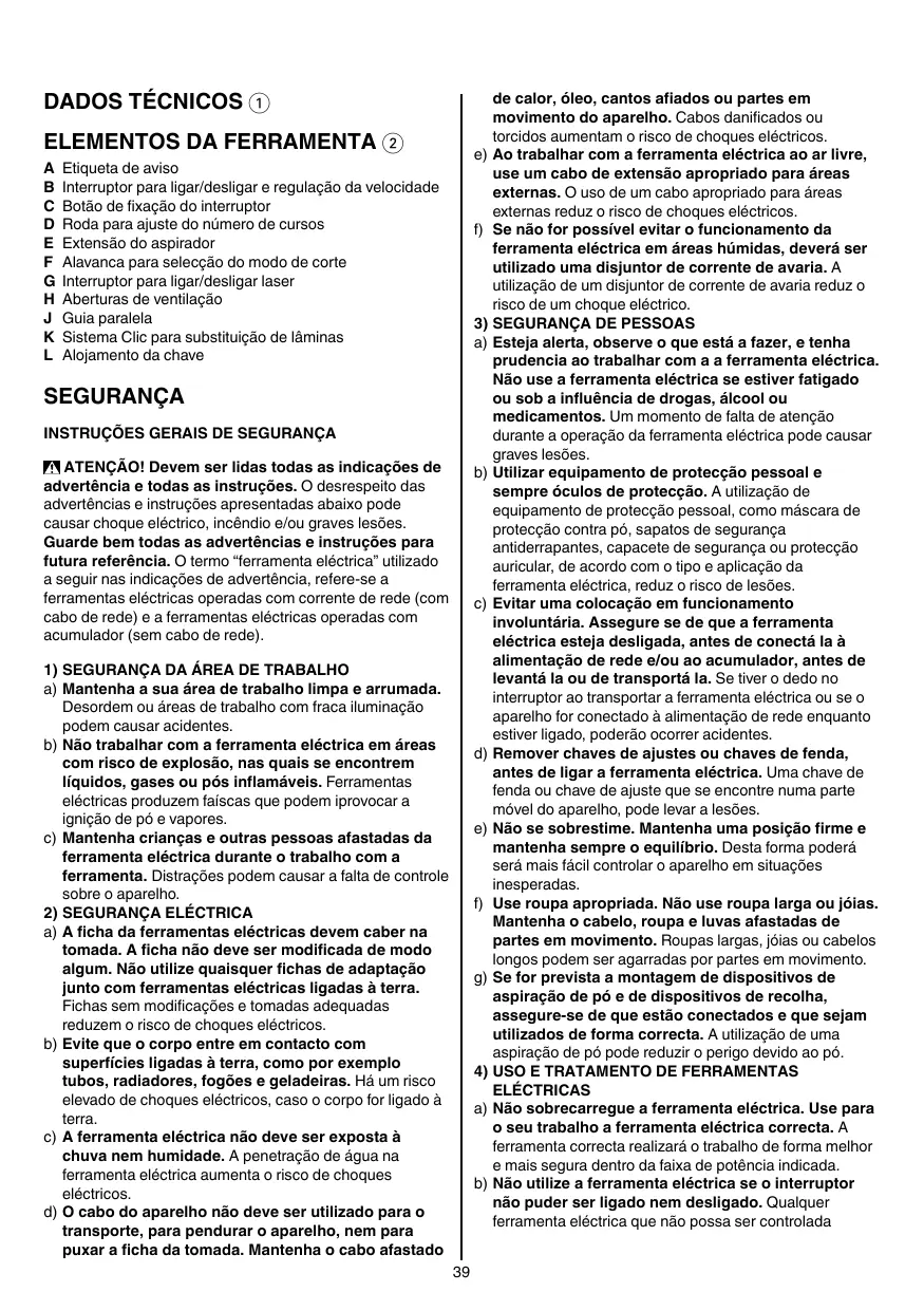 INSTRUCTIONS DE SECURITE POUR SCIES SAUTEUSES GENERALITES