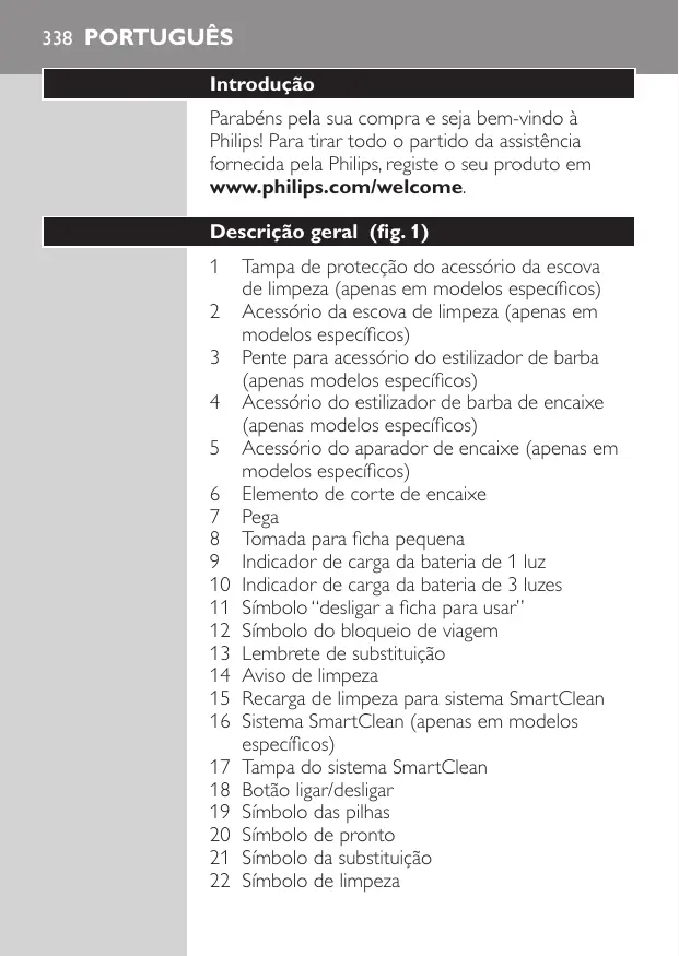 - Este aparecido Philips cumpre todas as normas e regulamentos aplicáveis relativos à exposão a Campos electrémáticos.