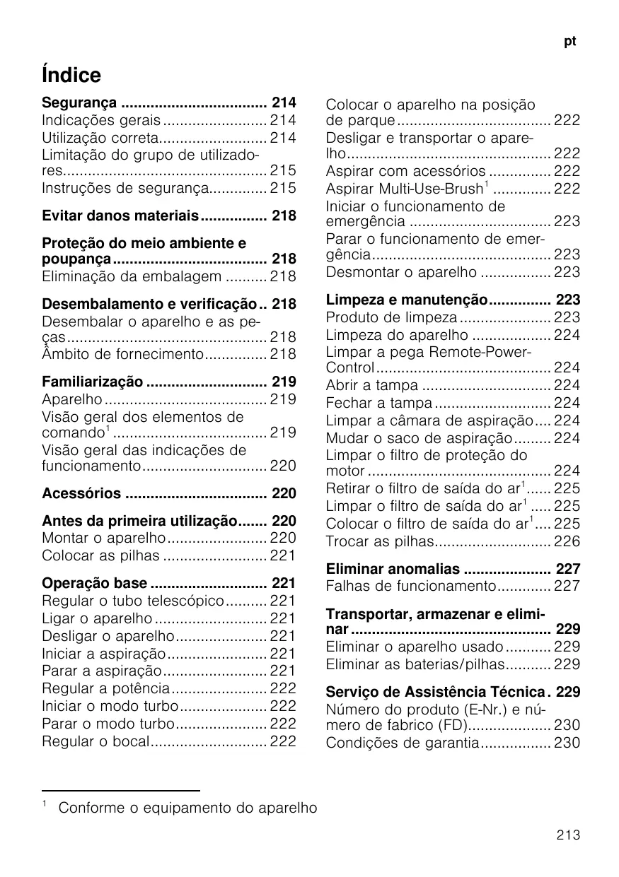 - Limpeza e manutenção p. 223