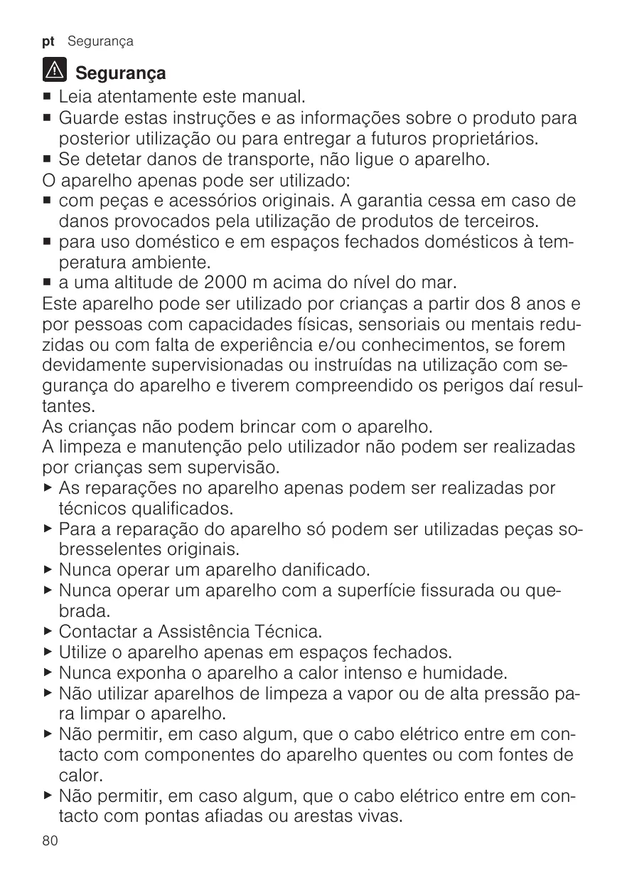 Este aparecido pode ser utilisé por crianças a partir dos 8 anos e por pessoas com capacidades físicas, sensoriais ou mentalis reduzidas ou com falta de experiencia e/ou conhecemimentos, se foram devidamente supervisionadas ou instruções na utilização com segurará do aparecido e tiverem compreendido os perigos daresultantes.